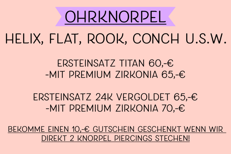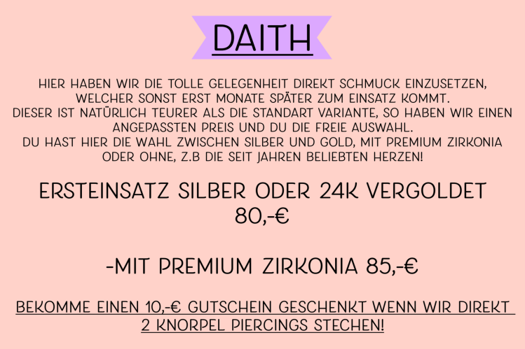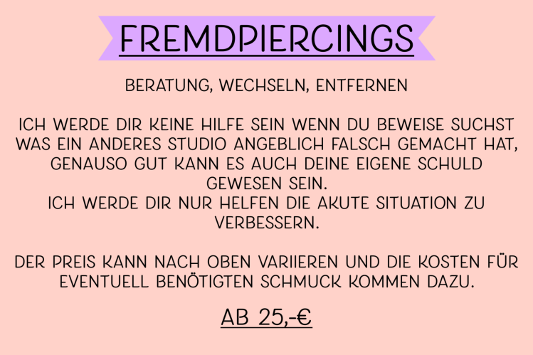 Sollte dein Wunschpiercing hier nicht aufgelistet sein kann es es sein das ich dies nicht mehr anbiete, du darfst aber gerne eine Anfrage bei mir machen.