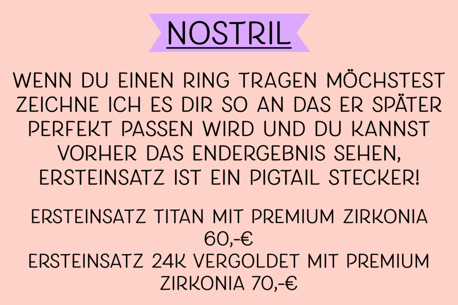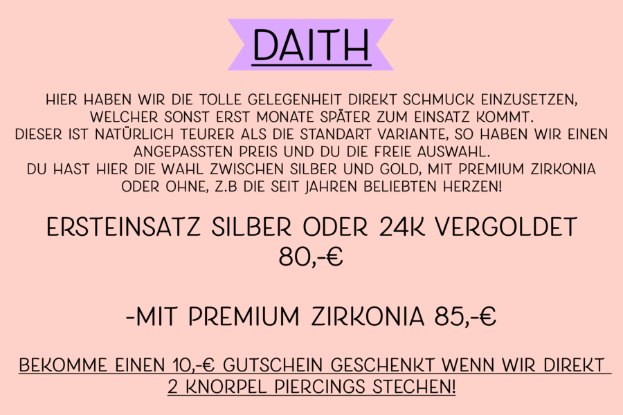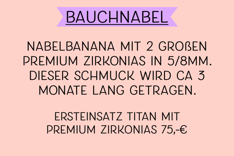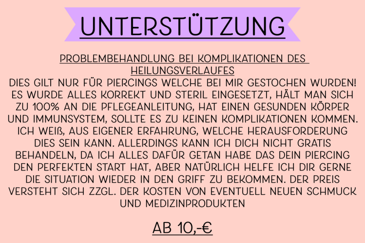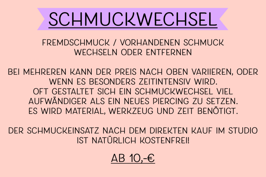 Bei einigen Piercings benötigst du, nach ein paar Wochen, kürzeren Schmuck für einen komplikationsfreien Heilungsverlauf. Dieser Schmuck ist NICHT im Preis enthalten!