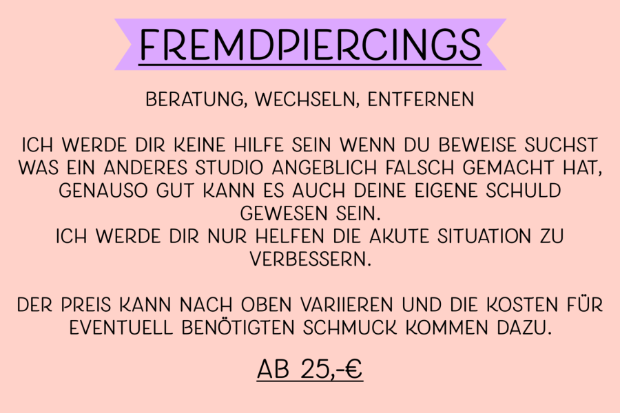 Bitte beachte das ich wirklich ausschließlich mit Termin arbeite, egal wofür!